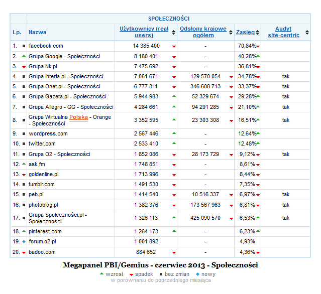 W Polsce triumfy popularności nadal święci Facebook. Fanpage budują nawet zakłady pogrzebowe i masarnie, a w feedzie użytkowników pojawia się (wprawdzie targetowane) przysłowiowe mydło i powidło. Swoją stronę na Facebooku ma m.in. PGR Bródno z Warszawy. Facebook ciągłymi zmianami w algorytmie próbuje pogodzić interesy własne (zarobek), marketerów (wyświetlanie contentu) i użytkowników (nie chcemy reklam!). Do tego liczba użytkowników przestała rosnąć docierając do niespotykanego pułapu miliarda osób. Nie mniej jednak czas wzrostów minął. Dla promocji oznacza to jedno – ciągle rosnące nakłady na reklamę na FB i coraz trudniejsze docieranie do użytkowników. Z danych Socialbakers wynika, że aż ¾ zasięgu na Facebook marketerzy uzyskują dzięki wpisom sponsorowanym. ¾ tego zasięgu to wpisy w News Feedach użytkowników – czyli te, które wprawdzie mają większą klikalność, ale jednocześnie bardziej irytują niż boksy.