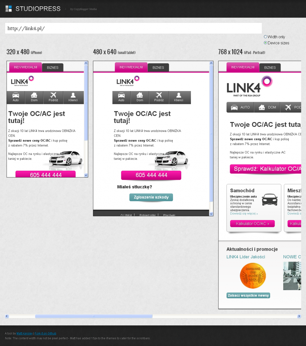 Responsywną stronę internetową, ułatwiającą proces wyboru ubezpieczenia online uruchomił w 2012 roku m.in. Link4. – Dzięki rozwiązaniom wpisującym się w trend responsive design, posiadacze smartfonów oraz tabletów mogą z łatwością korzystać z kluczowych sekcji strony. Zastosowanie tej technologii jest nowością na polskim rynku – mówi Maciej Marszałek, Dyrektor Departamentu e-Business w Link4.