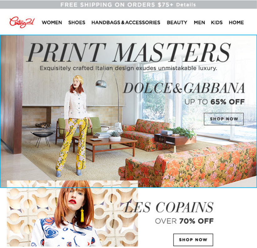 Przykład przekierowania z bannera znajdującego się w wiadomości email sklepu Century 21