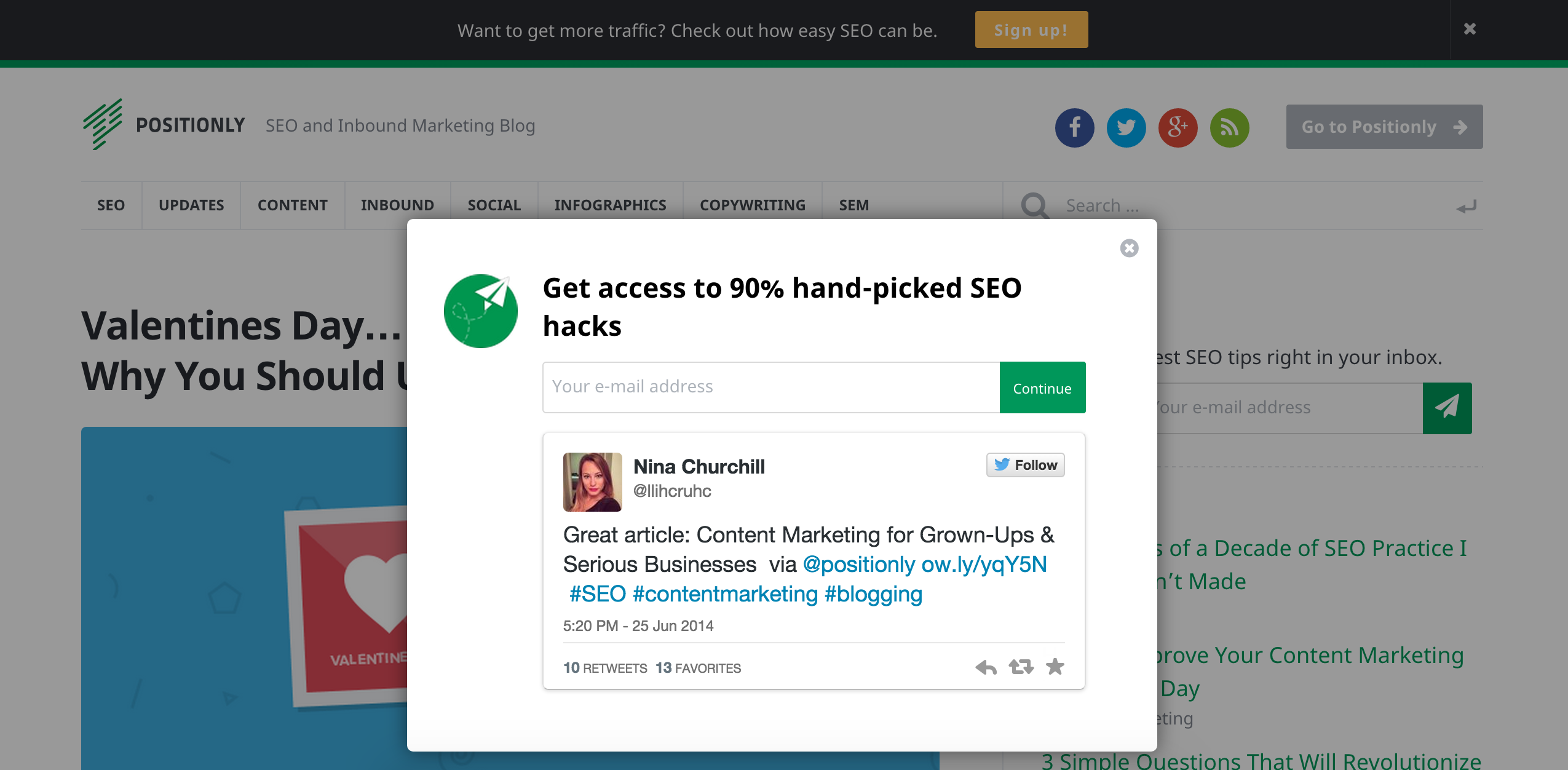 Social proof w formularzu typu lightbox serwisu Positionly