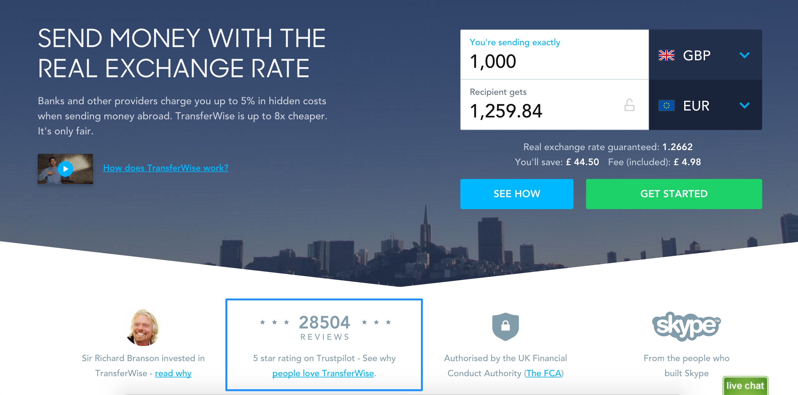 Social proof na stronie Transferwise