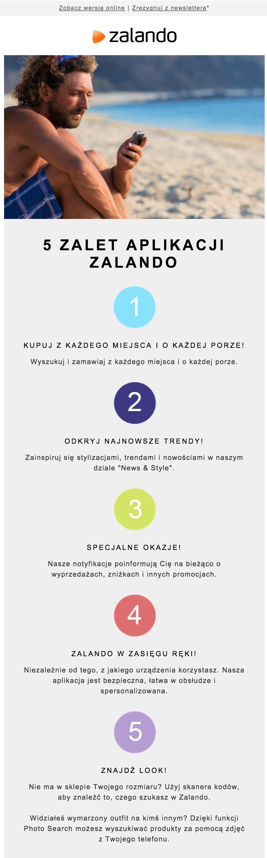 Fragment wiadomości z cyklu onboardingowego Zalando