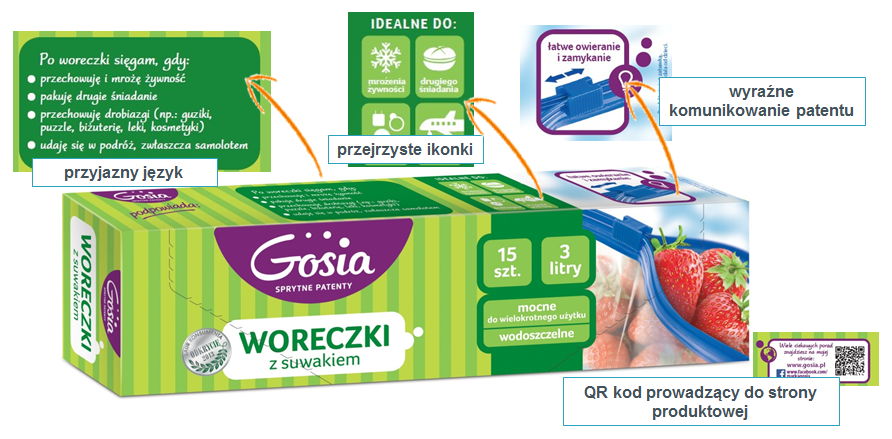 Poprzez nowe opakowania podkreślono, że marka Gosia oferuje sprytne patenty, a warto przypomnieć, że oferowała je jako pierwsza w swojej kategorii. Oprócz ładnego designu i spójnej komunikacji wizualnej zależało nam również na nadaniu marce głębszego znaczenia emocjonalnego. Chcieliśmy skupić się na wyższych potrzebach konsumenckich – mówi Izabela Habram.