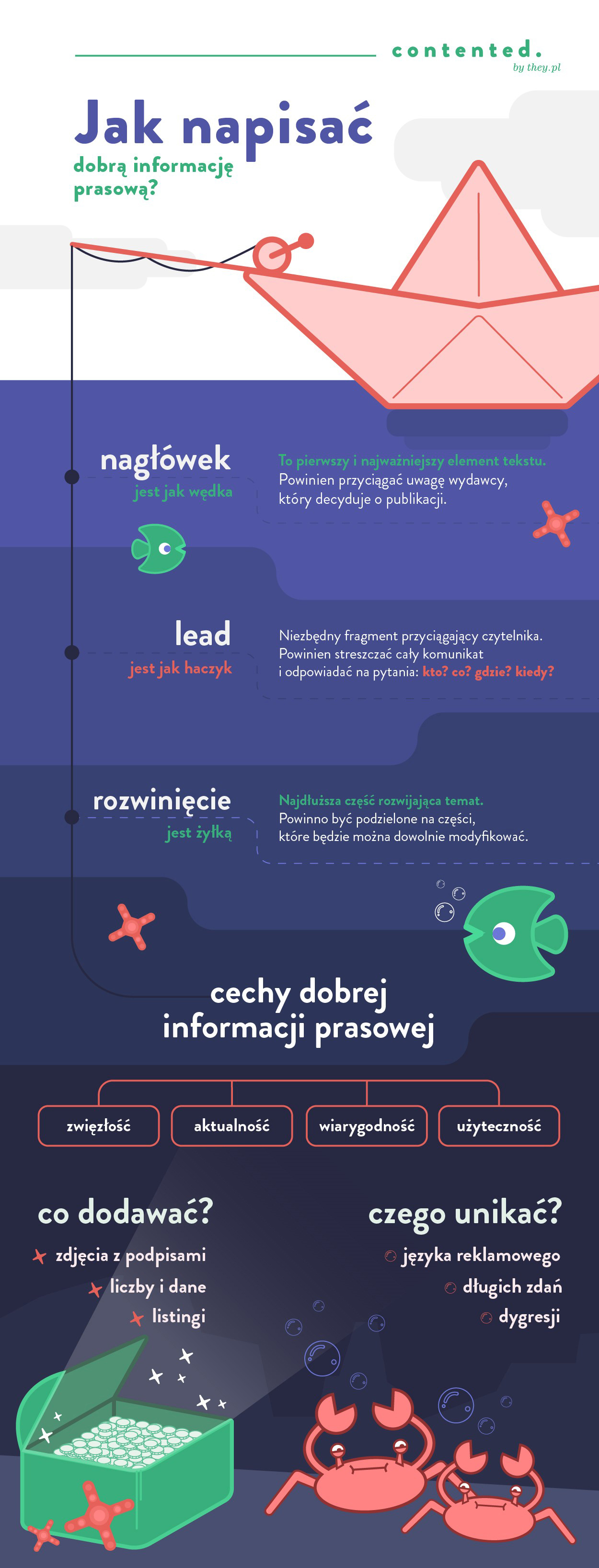 Niestety nie. Co więcej, część z nich jest od razu odrzucana przed wydawców. Klaudia Drewczyńska, content designer z Contented by They.pl tłumaczy w infografice, jakimi zasadami się kierować, aby napisać dobrą informację prasową.