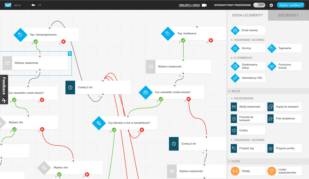 Fragment przykładowego cyklu marketing automation GetResponse