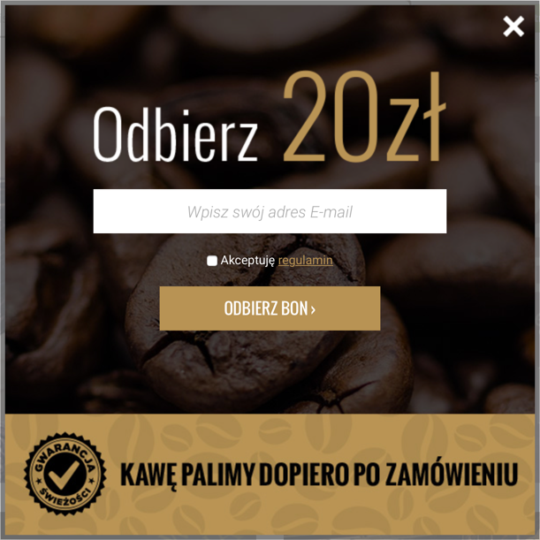 Formularz zapisu typu pop-up na stronie marki TommyCafe wymaga podania jedynie adresu e-mail.