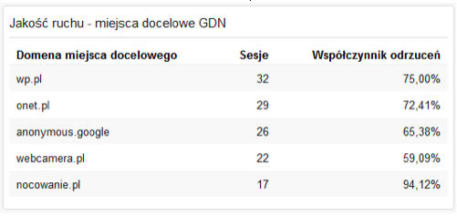 Analiza miejsc docelowych generujących ruch w ramach sieci reklamowej Google umożliwia szybką weryfikację jakości ruchu z kampanii GDN.