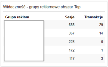 Liczba transakcji generowanych przez grupy reklamowe w obszarze Top odpowie nam na pytanie, czy warto inwestować w tak dobrą widoczność poszczególnych grup reklamowych.
