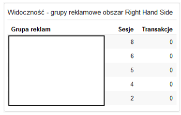 Widoczność – grupy reklamowe – obszar Top i Right Hand Side
