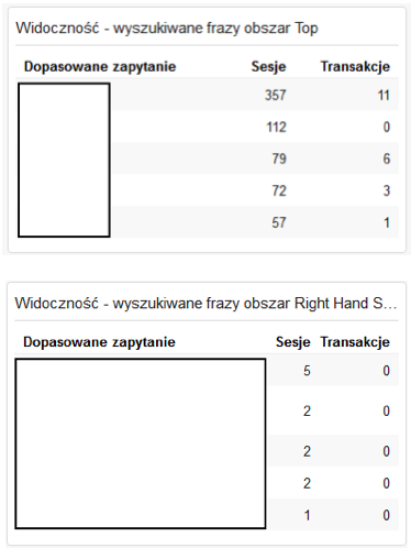 Widoczność – wyszukiwane frazy – obszar Top i Right Hand Side