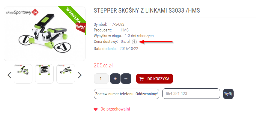 Przykładowo, Sklep Sportowy24 proponuje wysyłkę gratis przy wybranych produktach.