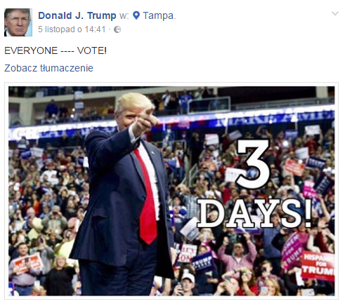 Donald Trump / Oficjalna komunikacja w kanałach kandydatów