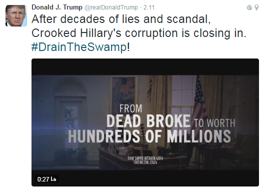 Spot, w którym poruszone są kwestie korupcji Clinton Foundation i polityki pay-to-play, rzekomo dzięki którym Clintonowie stali się milionerami.