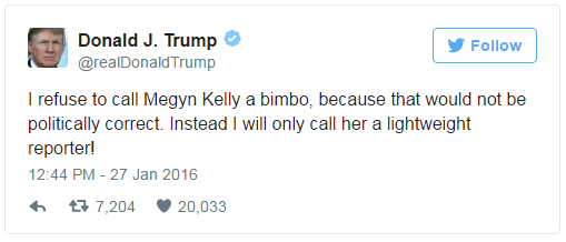 Media społecznościowe oferowały Donaldowi Trumpowi również kolejne kanały, w których mógł utożsamiać poszczególnych kandydatów z wymyślonymi przez niego przezwiskami, mającymi jak najlepiej opisywać przywary tych konkurentów. Były wśród nich m.in. Crooked Hillary, Lyin’ Ted (Cruz), Low Energy Jeb (Bush), Crazy Bernie (Sanders) czy Goofy Elizabeth Warren.