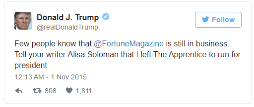 Donald Trump, jak zostało już wspomniane, znany jest z tego, że część tweetów pisze sam. Jest to jednak grube niedopowiedzenie, ponieważ w ciągu swojej kampanii Donald Trump stał się niemal królem Twittera, za pośrednictwem którego toczył wojny z wszystkimi swoimi wrogami – od stacji telewizyjnych do przeciwników politycznych. Jego uszczypliwe tweety zdobyły mu olbrzymią popularność wśród internautów i były szeroko udostępniane na forach dyskusyjnych i w mediach społecznościowych.