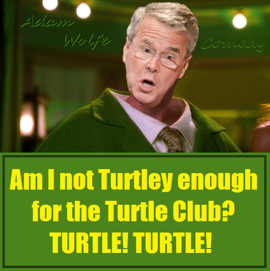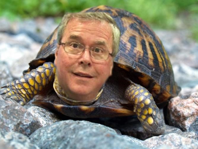 Kontekst III: Jeb Bush określił siebie jako „wesołego żółwia” na początku kampanii i w trakcie jej trwania podarował „przypadkowemu” chłopcu w restauracji figurkę żółwia, którą „przypadkiem” miał przy sobie.