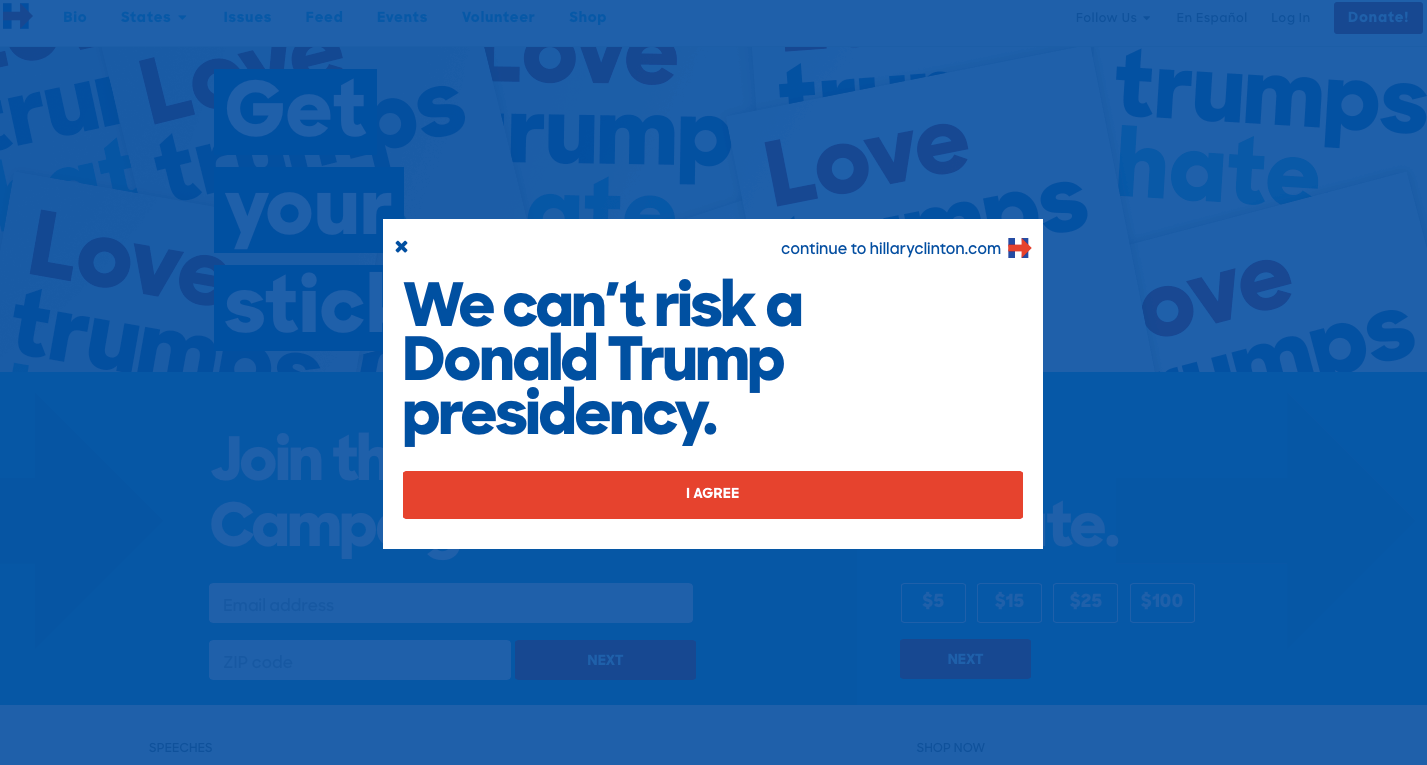 W ramach kampanii przeprowadzono we wrześniu 2016 akcję #LoveTrumpsHate składającą się z serii filmów internetowych, w których zwykli ludzie, którzy zetknęli się z Hillary Clinton, opowiadają o jej zaletach, m.in. dobroci, pracowitości czy skromności. Nazwa akcji odnosi się oczywiście do Donalda Trumpa, który w domyśle jest tutaj po stronie nienawiści, podczas gdy Hillary to miłość. Pomimo tego, że opowiedziane historie mogą potencjalnie wzruszać, również w tym przypadku najważniejsza jest sama Hillary Clinton, nie obywatele, którym pomogła – mieli oni tylko szczęście, że trafili w swoim życiu na taką cudowną kobietę.