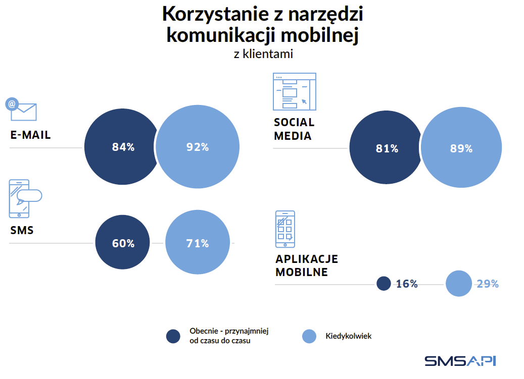 Według raportu „Komunikacja mobilna w biznesie” Polacy w wieku powyżej 15 lat są otwarci na otrzymywanie ofert handlowych na telefon, a jako najwłaściwszą formę takich komunikatów podają SMS. Wskazało tak 25% ankietowanych. W dalszej kolejności wymienione zostały e-maile (14%) i aplikacje mobilne (7%).