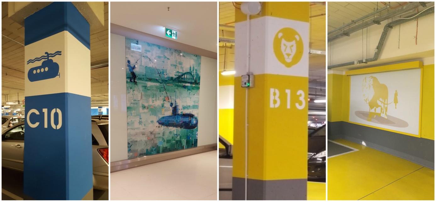 Parking w Posnanii zajmuje bardzo dużą powierzchnie. By ułatwić klientom odnalezienie samochodu, przestrzeń posegregowano nie tylko według liter i numerów, ale podzielono także na strefy oznaczone łatwymi do zapamiętania symbolami i kolorami. Dodatkowe grafiki przy wejściu, a także tożsamy układ stref na mapie, sprawiają, że cała komunikacja jest spójna i przyjemna.