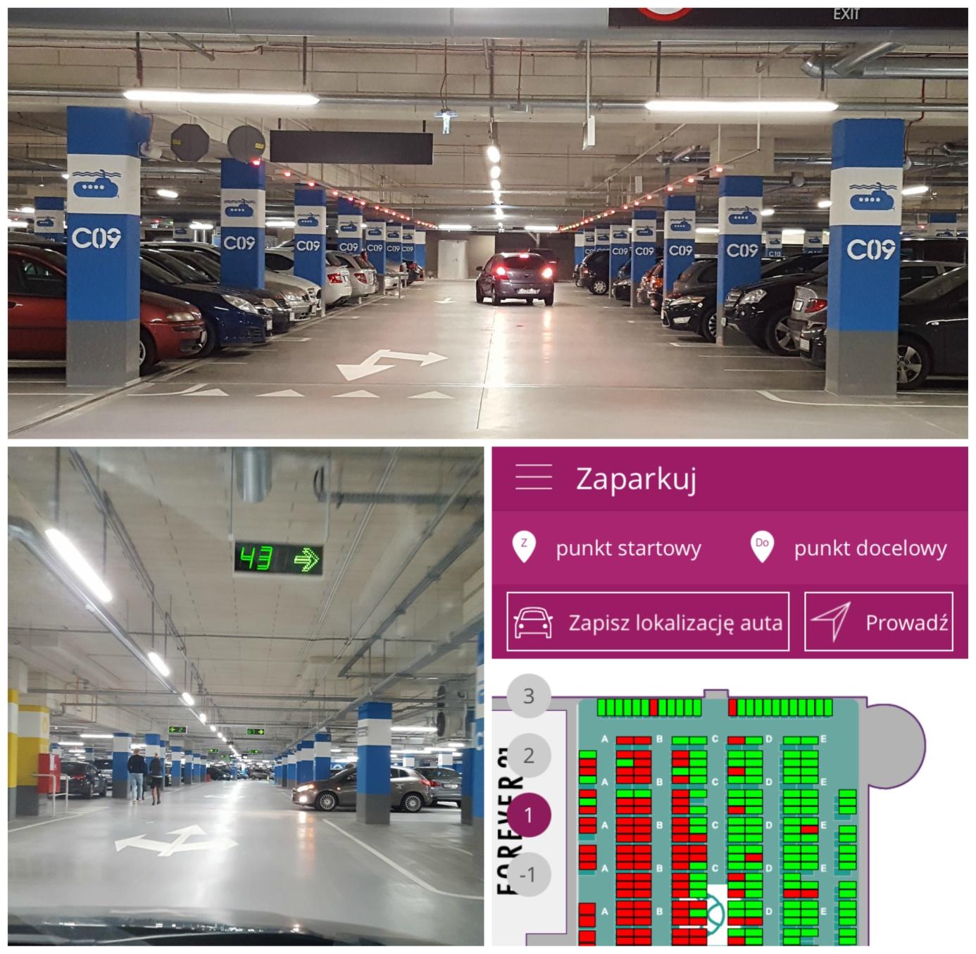 Poza standardowymi już udogodnieniami, wykorzystywanymi w parkingach wielu centrów handlowych, jak pokazywanie ilości dostępnych miejsc parkingowych, czy informowanie o tych wolnych za pomocą zielonych światełek, Posnania proponuje dodatkowe rozwiązania. Po pierwsze, wolne miejsca, jeszcze przed wjazdem do centrum, można sprawdzić w aplikacji mobilnej (nie tylko ich ilość ale też konkretną pozycję). Po drugie, po zaparkowaniu można zapisać lokalizację swojego samochodu. To rozwiązanie, razem z podziałem na kolorystyczne sfery, z pewnością skutecznie zapobiega błędom i nie pozwala klientom na zgubienie auta w gąszczu innych.