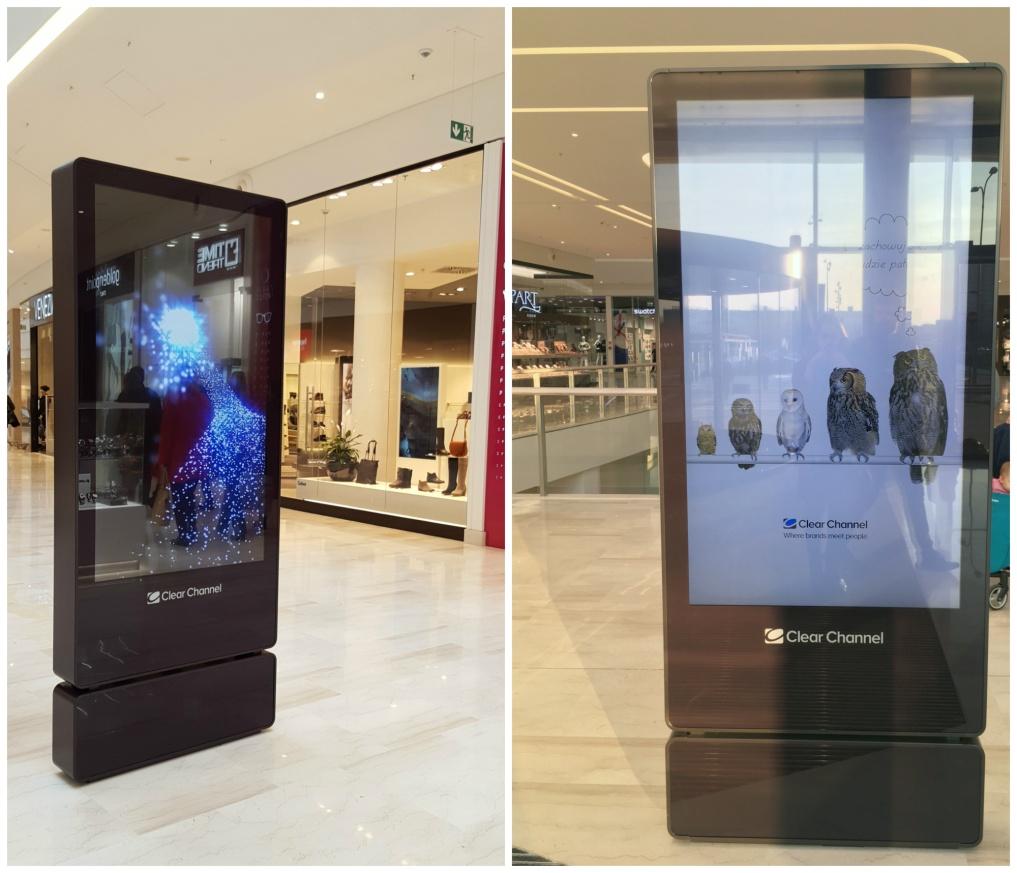 Na powierzchni całego centrum porozstawiane są w wielu miejscach ekrany reklamowe, na których wyświetlane są dynamiczne spoty. Poprzez swoją formę, sprawiają wrażenie wygaszonych, interaktywnych informatorów. Wiele osób podchodzi do nich i klikając w ekran próbuje je uruchomić. Ze względu na ich mylące przeznaczenie i dość małą liczbę standów informacyjnych, ekrany reklamowe mogą powodować irytację klientów.