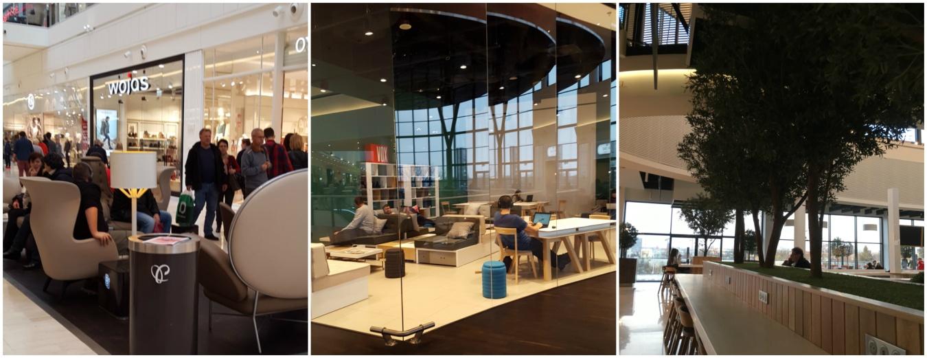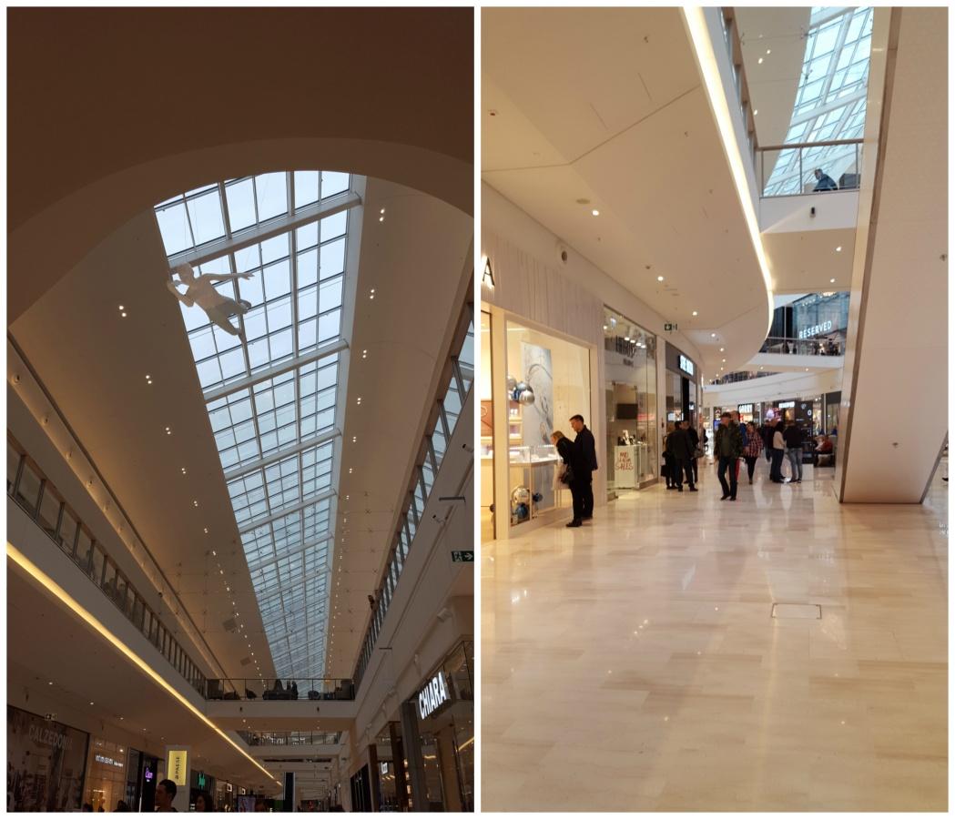 Architektura wnętrza jest prosta, jasna i elegancka. Szerokie ciągi komunikacyjne zapewniają przestronność oraz wygodę. Forma nie dominuje nad główną funkcją obiektu – to witryny sklepowe przyciągają uwagę, co pozwala klientom skupić się na usługach a nie formie architektonicznej.  Przyjazne oświetlenie sztuczne oraz dostęp do naturalnego, dziennego światła zwiększa komfort przebywania w pomieszczeniu – nie występuje tutaj zjawisko olśnienia, tak częste w innych tego typu obiektach.