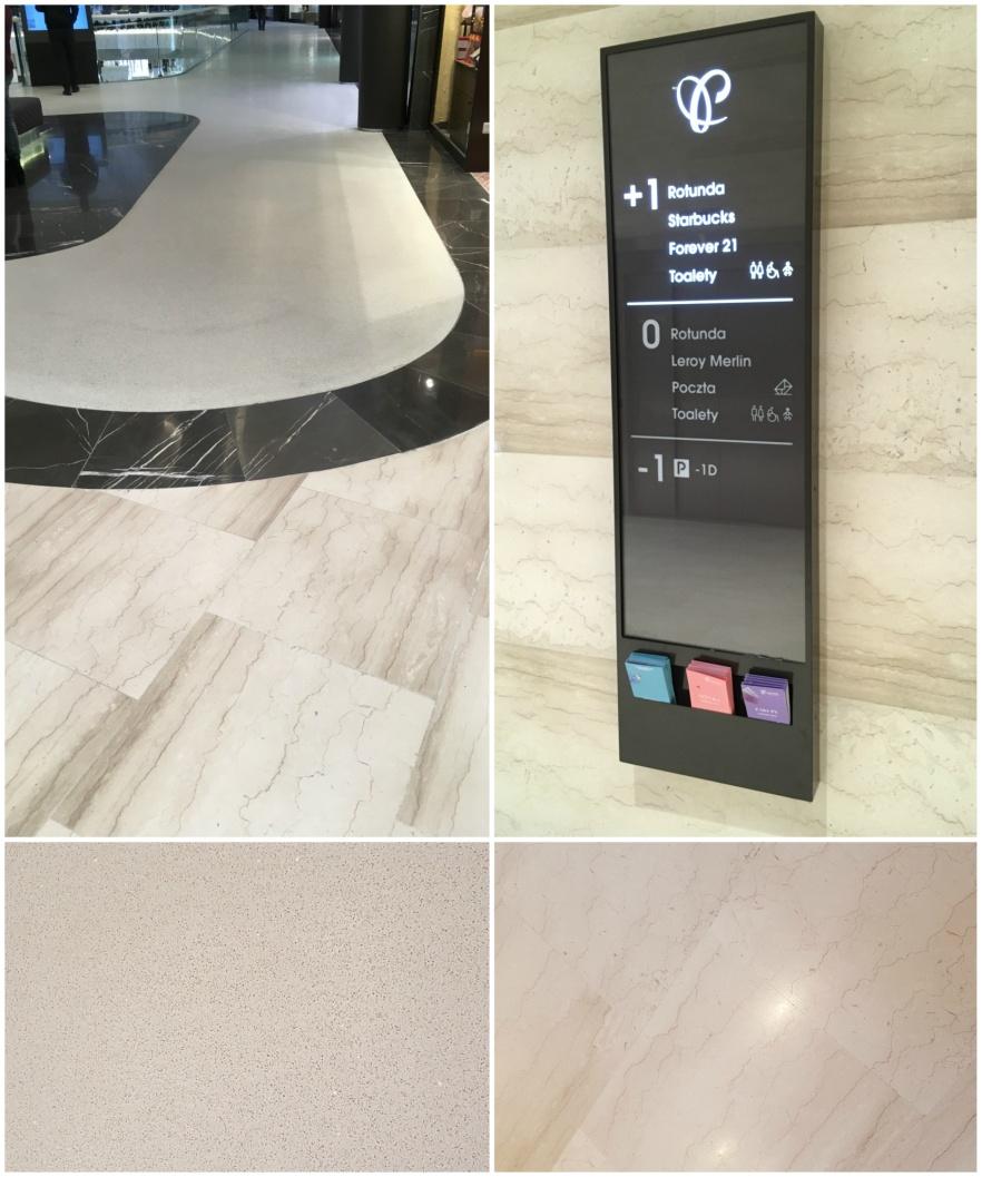 Chociaż w Posnanii znajdują się tylko dwa piętra, klienci są często informowani o poziome, na którym właśnie się znajdują. Na informacyjnych panelach podświetlone jest właściwe piętro. Dodatkowo, w każdym panelu znajdują się ulotki przedstawiające plan obiektu i usługi. Ciekawym rozwiązaniem, ułatwiającym poruszanie się po obiekcie, jest zróżnicowanie posadzek – główne ciągi komunikacyjne zostały wyróżnione błyszczącymi płytkami, natomiast w bocznych znajdują się matowa, bardziej stonowana podłoga. Pomaga to zorientować się w jakim miejscu właśnie przebywamy, nawet jeśli na pierwszy rzut oka różnice trudno dostrzec.