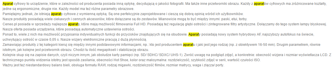 Przykład treści na stronie nasyconej słowami kluczowymi