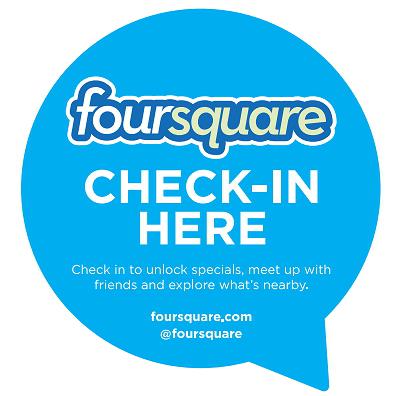 W większości sklepów czy kawiarni spotykamy nalepki informujące o możliwości płacenia kartą, dostępności Wi-Fi albo obecności marki na Facebooku. Warto zaopatrzyć naszą siedzibę w znak informujący o tym, że można znaleźć nas na Foursquare.
