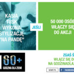 Co jeszcze zrobią znani Polacy, jeśli do akcji włączy się odpowiednia liczba osób ? Jeśli 100 000 osób potwierdzi swój udział na godzinadlaziemi.pl, to Kora skosi trawę, Michał Piróg z Agnieszką Szulim przepłyną na tratwie z plastikowych butelek na drugi brzeg Wisły, a Kinga Rusin udowodni, że w szpilkach nie tylko dobrze wygląda ale i… wejdzie na 30 piętro Pałacu Kultury i Nauki.