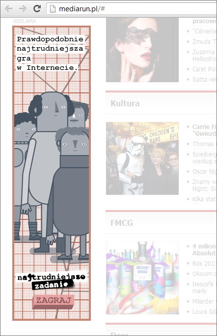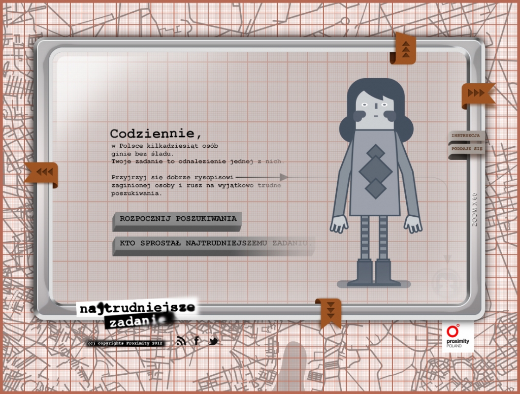 Bannery przerzucają użytkowników na stronę najtrudniejszezadanie.pl, gdzie znajduje się gra „Najtrudniejsze Zadanie”. Gra zaprojektowana jest tak, by była naprawdę żmudna, trudna i męcząca, ale i wciągająca. Potrzeba sporej cierpliwości i wytrwałości, żeby wykonać powierzone zadanie. A jest nim odnalezienie jednej osoby wśród tysięcy innych, podobnych osób, w mieście, gdzie wszystkie miejsca są podobne do siebie.