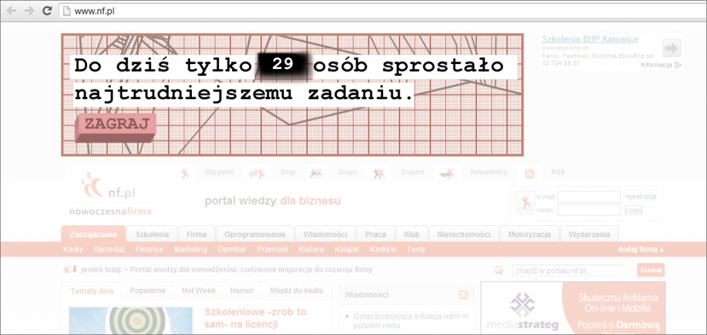 Na niektórych portalach internetowych, m.in. pb.pl i nf.pl pojawiły się bannery reklamujące „Prawdopodobnie najtrudniejszą grę w Internecie”. Nie ma na nich ani słowa o Fundacji ITAKA.