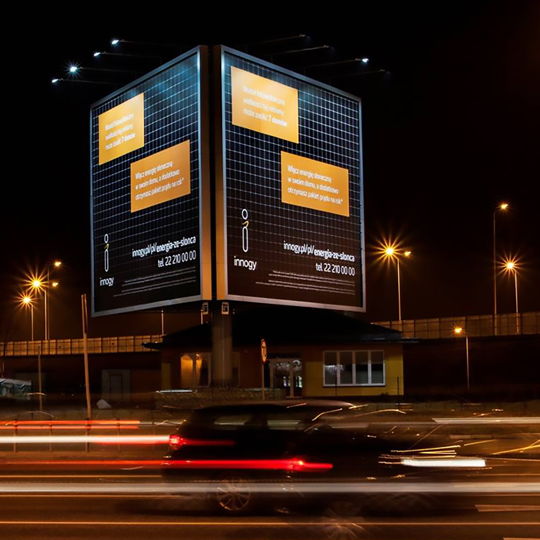 Agencja 180heartbeats wykorzystała różnorodność form i kształtów nośników reklamowych w stolicy, by pokazać możliwości modułów fotowoltaicznych innogy. Przy współpracy z ekspertami innogy każdy nośnik – od reklamy w prasie i tramwajach, aż po wielkie billboardy – dokładnie przeliczono na urządzenia, jakie zasili moduł fotowoltaiczny jego wielkości.