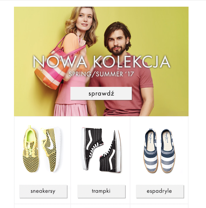 Ryc. Fragment newslettera e-obuwie, wprost zachęcający do sprawdzenia wiosennej kolekcji sklepu.