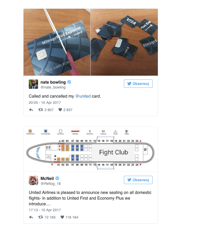 Linie lotnicze United Airlines przez overbooking sprzedały za dużo biletów na lot z Chicago do Louisville i musiały zwolnić miejsca dla czterech pracowników linii. Zgodnie z procedurami, United poprosił ochotników o opuszczenie miejsc za stosowną opłatą, jednak gdy nie znalazł się żaden chętny, linia wytypowała czterech pasażerów. Jeden z nich, tłumacząc się tym, że jest lekarzem i musi zobaczyć się ze swoimi pacjentami w poniedziałek rano, odmówił opuszczenia miejsca. Mimo to został wyciągnięty ze swojego fotela siłą i wywleczony za ręce z samolotu.