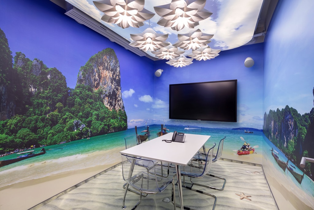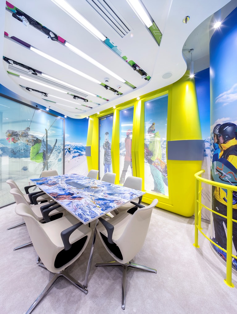 Każda z sal konferencyjnych utrzymana jest w innej konwencji. Inspiracją były pasje pracowników. Realizm uzyskany został głównie dzięki grafikom, które pokrywają wszystkie płaszczyzny pomieszczeń. Jakość zdjęć i technika wyklejania, dzięki której fototapety płynnie przechodzą na szklane drzwi, sprawiają, że piękne krajobrazy otaczają użytkowników przestrzeni ze wszystkich stron.