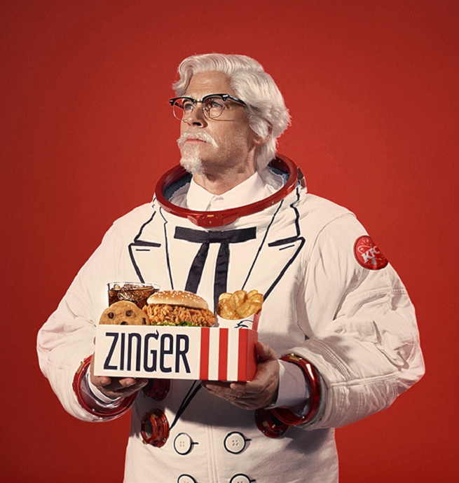 Kampania rozpoczęła się 90-sekundowym spotem, w którym pokazano pułkownika Sandersa w stroju kosmonauty przemawiającego do odbiorców. W ciągu półtorej minuty, opowiada on o misji kosmicznej KFC i o tym, jak Zinger jest przygotowywany do podróży w kosmos, swoją drogą ciekawe, czy przechodzi próby wytrzymałościowe 🙂