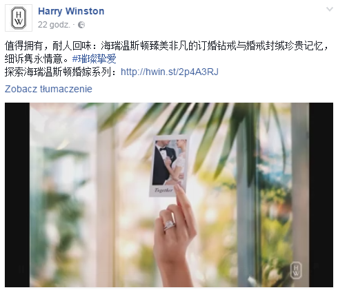 Harry Winston wykorzystuje generyczną komunikację i nie przykłada dużej wagi do jakości działań w mediach społecznościowych, jednak może sobie na to pozwolić, ponieważ stoi za nim doskonała reputacja, jakość produktów oraz cena – w tej półce cenowej konkuruje głównie z markami Graff oraz Leviev, czyli konkurencja Harry’ego Winstona nie jest zbyt liczna (i popełnia podobne błędy – Graff również zamieszcza komunikaty w różnych językach na jednym profilu).