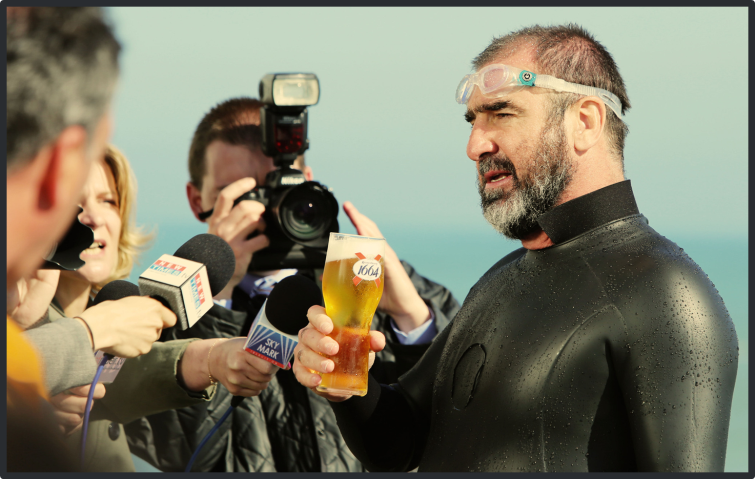 Były piłkarz Eric Cantona w nowej kampanii piwa Kronenbourg 1664 (produkowanego przez Carlsberg) obiecuje, że przepłynie kanał angielski, jeśli 10 tys. Brytyjczyków potwierdzi, że piwo to jest najlepsze na świecie.