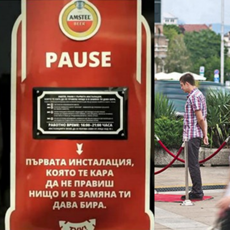Bułgarzy mogli dostać darmowe piwo od firmy Amstel, jeżeli nic nie robili przez trzy minuty. Wystarczyło tylko stać, by dostać puszkę piwa. Nie można było rozmawiać przez telefon ani komunikować się z innymi ludźmi. Producenci piwa Amstel chcieli, by przechodnie odpoczęli od ciągłej bieganiny dnia codziennego. W zamian za co mogli dostać darmowe piwo.