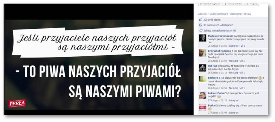 Jak pokazuje jednak Facebookowe życie męskie sprawy oraz sport nie zawsze muszą być skuteczne jeśli chodzi o komunikację marek piwnych. Większość z nich rozmawia z fanami albo o sporcie, albo o imprezach. W dodatku komunikacja jest zazwyczaj skierowana praktycznie wyłącznie do mężczyzn. Przykład Perły pokazuje, że można inaczej i że to inaczej może być skuteczne.