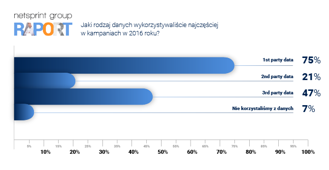 Najczęściej wykorzystywane są tzw. 1st party data, czyli dane własne reklamodawców (czerpane z ich platform transakcyjnych i systemów do zarządzania klientami) – używa ich 75% respondentów.