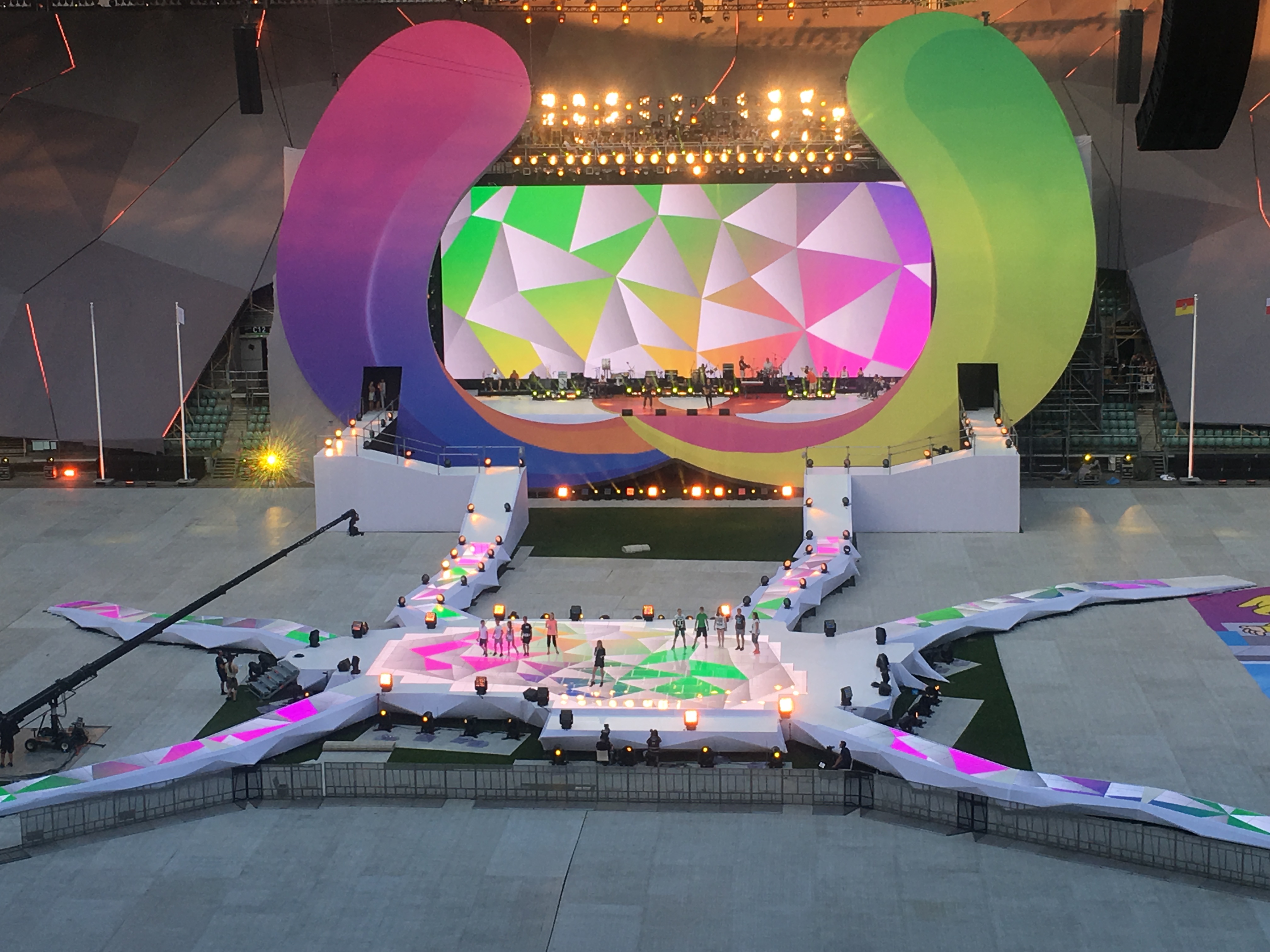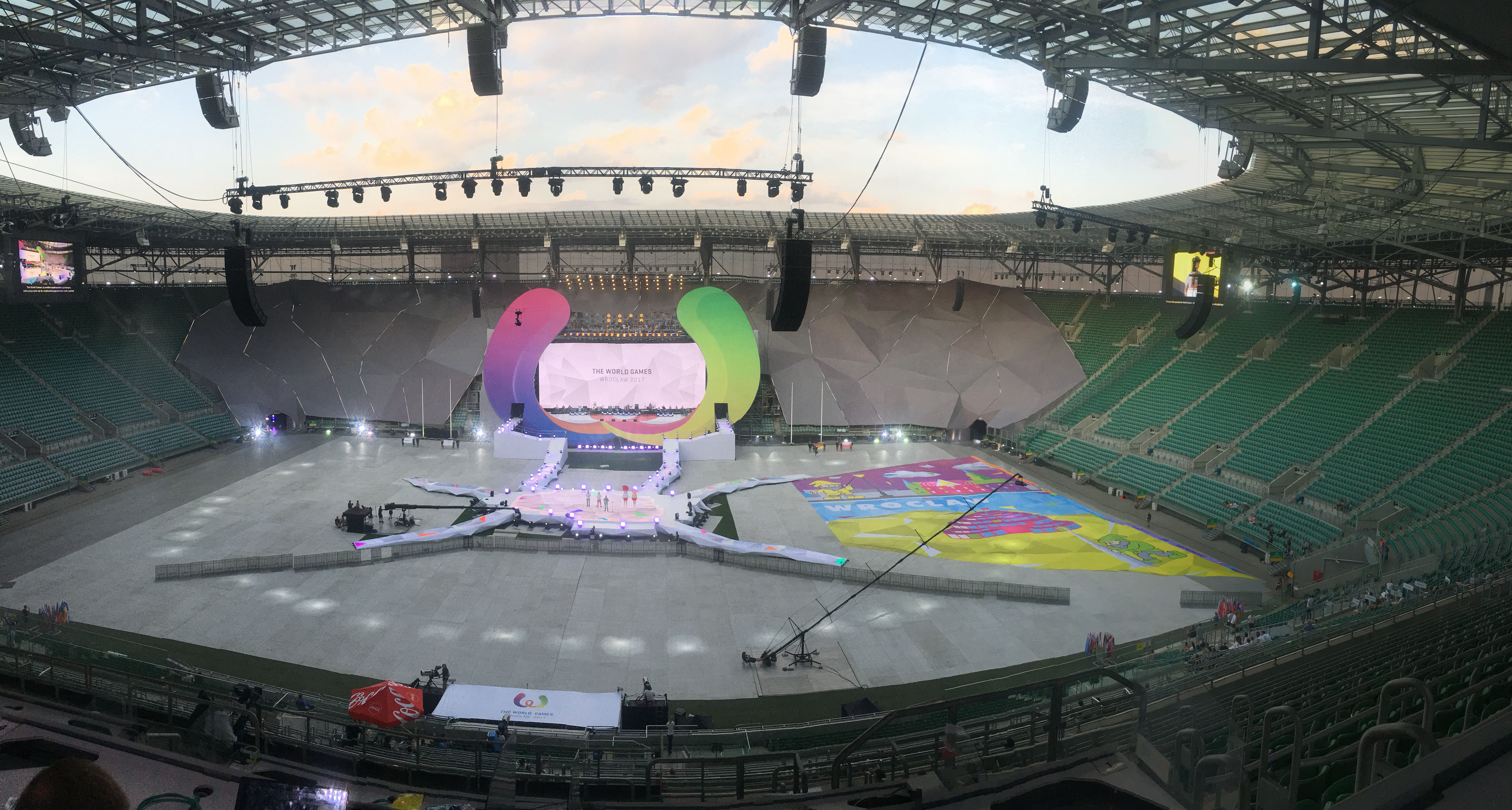 Ceremonia Otwarcia Igrzysk odbyła się na Stadionie Miejskim we Wrocławiu. Na jego terenie zainstalowane zostały ekrany diodowe o łącznej powierzchni 800m2, czyli wielkości odpowiadającej blisko 5 – pełnowymiarowym – boiskom do siatkówki. 280m2 podłogi LED o rozdzielczości 5mm i 7mm swoim kształtem nawiązywało do mapy Wrocławia. Całość zarządzana była za pomocą 2 media serwerów firmy d3 technologies 4x2pro i 4x4pro.