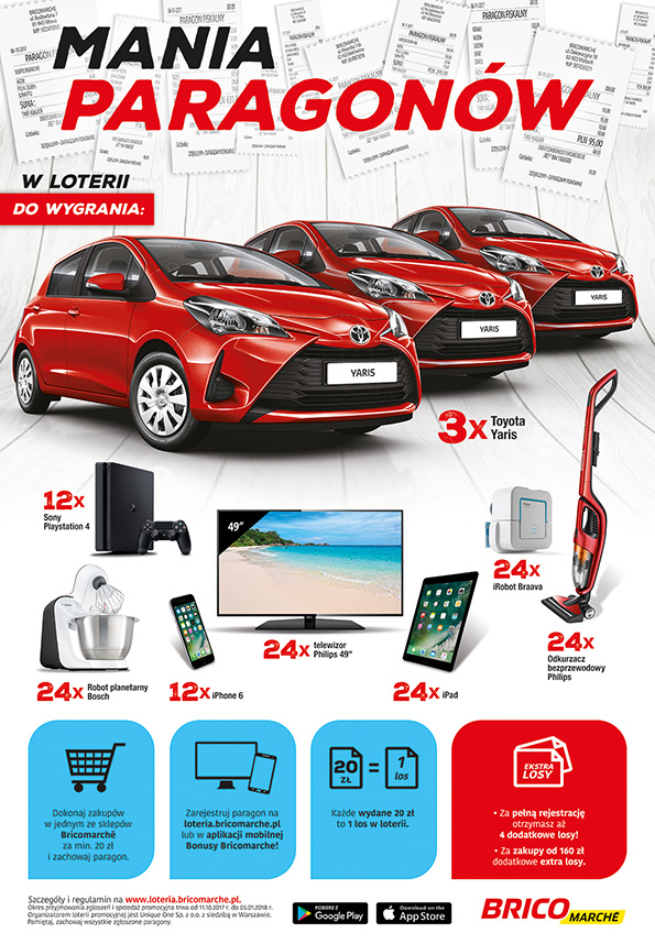 Agencja UNIQUE ONE jest odpowiedzialna za organizację i obsługę loterii, zaprojektowanie strony www.loteria.bricomarche.pl, przygotowanie aplikacji do rejestrowania paragonów, kreacji materiałów POS.