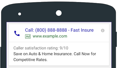 Podstawową funkcjonalnością tej reklamy jest zmodyfikowane rozszerzenie połączeń telefonicznych — to samo, które jest dostępne także dla każdej kampanii linków sponsorowanych, jednak rozszerzone w swojej formie. Pojawia się ono tylko na urządzeniach mobilnych — z założenia przystosowanych do wykonywania połączeń — przy reklamach w wyszukiwarce. Tytułem reklamy w tym wypadku będzie nasz numer telefonu, wzbogacony o dwie linie tekstu reklamowego poniżej, wraz z adresem strony docelowej. Wygląda to w następujący sposób: