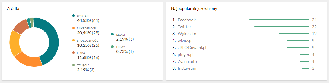 rys. Przykładowe automatyczne statystyki z panelu monitoringu mediów