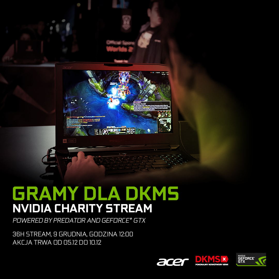 W tej charytatywnej akcji wezmą udział gracze z TEAM NVIDIA POLSKA i ich zaproszeni goście – w tym Krzysztof „Jankes” Jankowski, prezenter znany z Radia ESKA i TVP2 oraz wokalista Wojciech „Łozo” Łozowski, były lider zespołu Afromental. W sobotę, 9 grudnia o godzinie 12, zaczną grać w najpopularniejsze gry („PlayerUnknown’s Battlegrounds”, „Fortnite”, „Destiny 2”, „Counter Strike: Global Offensive”) w studiu w Warszawie. Łącznie wszyscy spędzą na graniu 36 godzin.