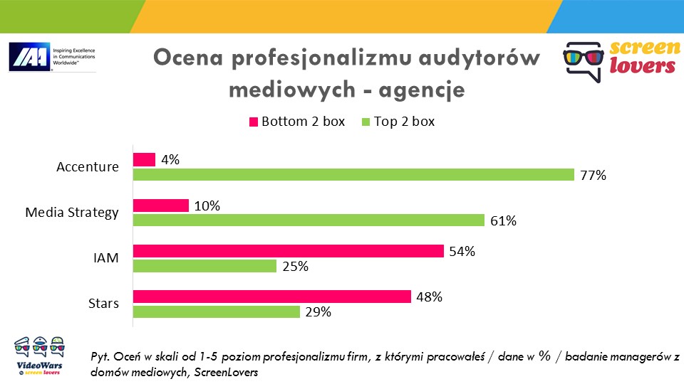 Najlepiej ocenianymi przez agencje audytorami w znakomitej większości wymiarów okazują się Accenture i Media Strategy.