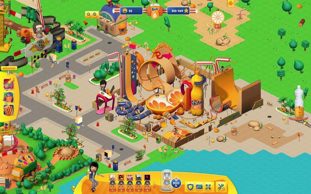 Zachodnioeuropejski oddział marki Fanta (Coca-Cola Company) wydał rozbudowaną grę, w której użytkownik może stać się właścicielem wielkiego parku rozrywki. Każda przejażdżka czy karuzela w King of the Park są sprytnie obrandowane, przez co użytkownik, bawiąc się w rozbudowę swojej scenerii, ma ciągły kontakt z marką. W tej produkcji kolejny brand również stawia na bezpośrednie połączenie gry z mediami społecznościowymi, dając możliwość budowania wesołego miasteczka online wspólnie z przyjaciółmi.