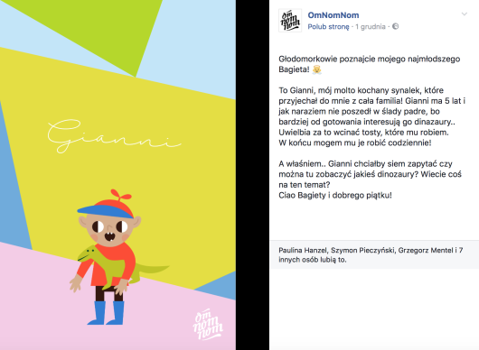 Czy zapiekanki mogą być tylko kultowe lub tradycyjne? Odpowiedzią jest iście włoski Pan Bagiett i jego rodzina, którą tworzy wraz z żoną Amelią i synem Giannim. Pan Bagiett to brand hero marki OmNomNom z Dąbrowy Górniczej, która specjalizuje się w serwowaniu zapiekanek, bagietek oraz burrito. Wartością marki jest włoska filozofia, która opiera się na otwartości, rodzinie, celebrowaniu posiłku i wspólnie spędzanego czasu. W ten sposób OmNomNom przykuwa dużą uwagę do jakości produktów, składników i gotowania. Marka wyróżnia się komunikatywnością i otwartością. Znakiem rozpoznawczym OmNomNom jest Pan Bagiett, który angażuje odbiorców w życie marki. W humorystyczny sposób zmiękcza całość działań komunikacyjnych. Język brand hero również nie jest przypadkowy – został opracowany tak, aby połączyć włoskie słówka ze sformułowaniami typowymi dla obcokrajowców uczących się języka polskiego. Pan Bagiett jest przykładem brand hero, który ułatwia marce przeprowadzanie akcji ambientowych. Jedną z takich akcji było wielkanocne szukanie króliczka – gra miejska, podczas której uczestnicy mieli za zadanie odnaleźć wskazówki pozostawione przez Bagieta, dzięki czemu można było wygrać Bagietonament – abonament na zapiekanki.